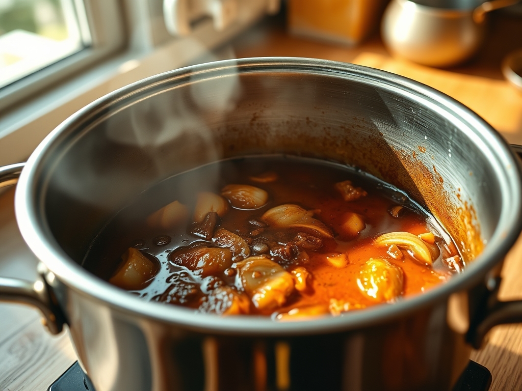 Pro Tip: Deglazing is an extraction process. Those caramelized bits contain concentrated umami. By using a digital scale to measure your liquids, you ensure the ratio of wine to broth provides the perfect acidity to break down the beef's tough fibers without overpowering the palate.